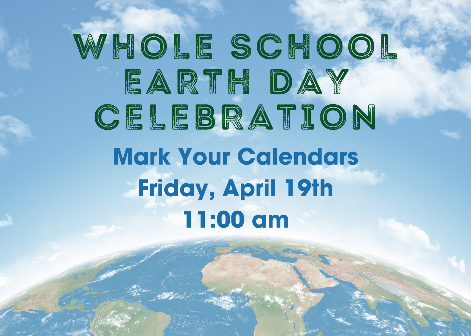 We're counting down the days to our next whole-school community event on Friday, April 19th, in celebration of Earth Day! We invite all families to join us from 11:00 am to 1:00 pm in our Peace Garden/Courtyard. In the event of inclement weather, we'll gather in the MPR.